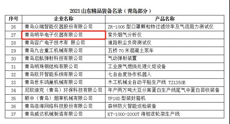 近日,山東省工業(yè)和信息化廳發(fā)布了《2021山東精品裝備名錄》。綠天使服務(wù)專精特新“小巨人”企業(yè)青島明華電子儀器有限公司“MH3200型 紫外煙氣分析儀”入選2021年度山東精品裝備。