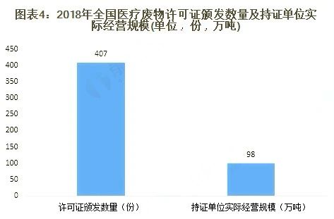 截止至2018年,全國各省(區、市)累計頒發407份危險廢物經營許可證用于處置醫療廢物,當年全國醫療廢物持證單位實際經營規模為98萬噸。但目前醫廢處理行業仍存在醫療廢物集中處置設施不足的問題。
