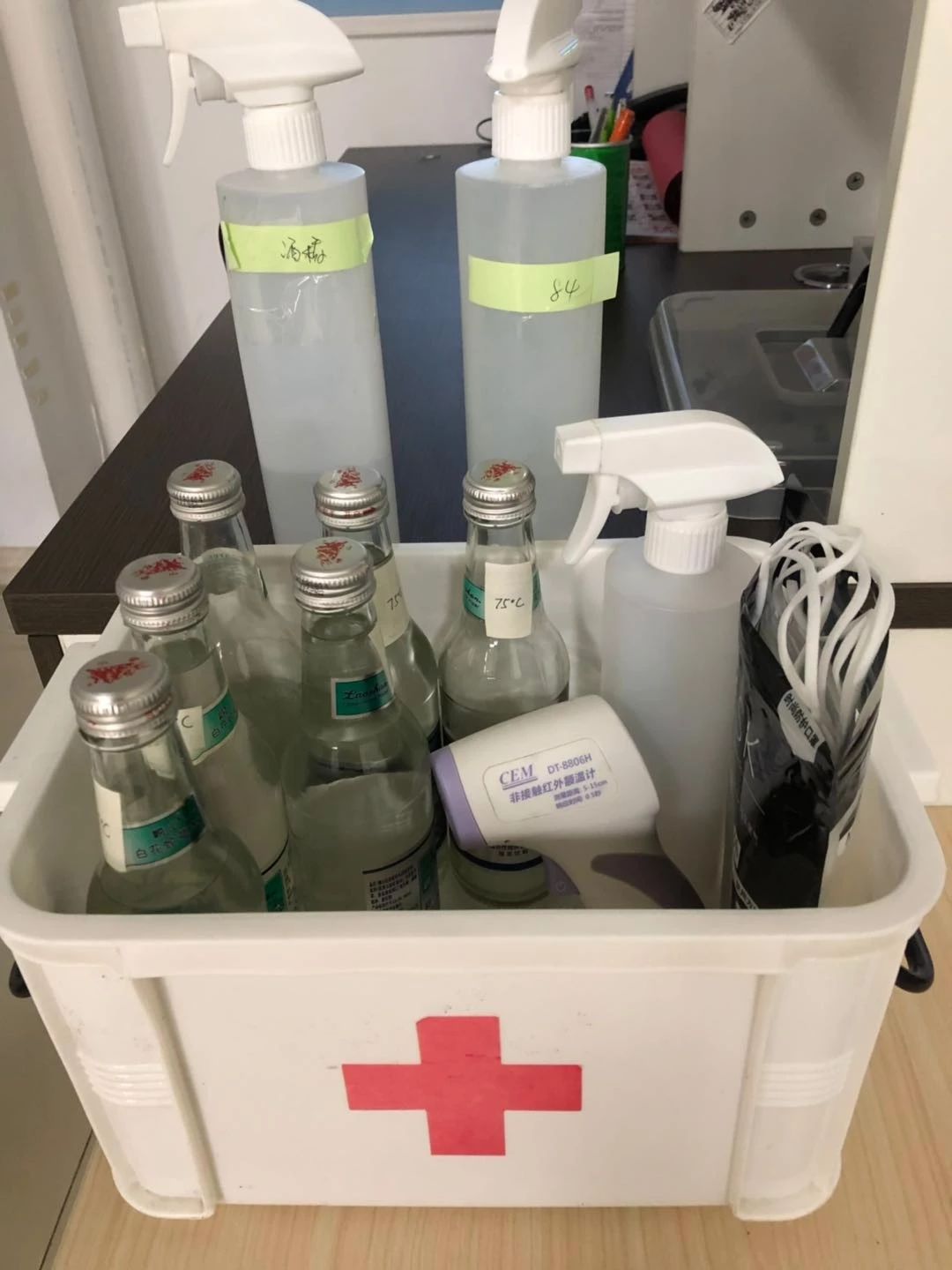 防護(hù)物資不可少:醫(yī)用口罩、體溫計(jì)、84消毒液、75%酒精、消毒人員個(gè)人防護(hù)物品等防控物資。