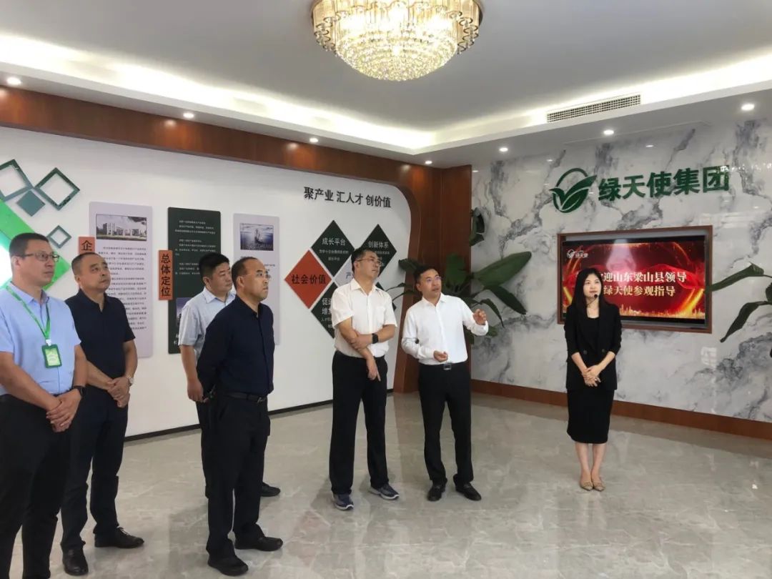 近日,梁山縣政協(xié)副主席孔祥華、梁山縣小安山鎮(zhèn)黨委書記錢華軍、縣公共事業(yè)服務(wù)中心主任楊書磊、縣投資促進(jìn)服務(wù)中心副主任張國偉、縣小安山鎮(zhèn)政府副鎮(zhèn)長關(guān)海濱、縣新型建材產(chǎn)業(yè)園管委會主任胡兆坤等一行來訪綠天使參觀交流,綠天使董事長王瑞強(qiáng)、副總經(jīng)理陳聰聰、總經(jīng)理助理張海洋、運營總監(jiān)師恒昌等進(jìn)行了熱情的接待。
