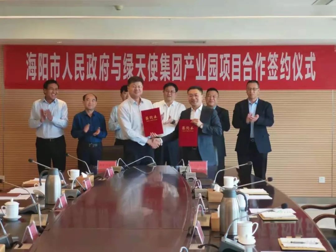 近日,海陽市人民政府與綠天使集團產業園項目合作簽約儀式在海陽市國際會議中心舉行。海陽市委常委、副市長張金富、市委常委、組織部長楊濤、市委組織部常務副部長李治田、市商務局局長、投資促進中心主任蔣峰、市投資促進中心黨組成員、招商聯絡服務中心主任陳軍、綠天使集團董事長王瑞強、綠天使集團煙臺公司總經理梁長波、綠天使集團副總經理師恒昌出席簽約儀式。雙方就產業園區的投資、規劃建設、招商運營及產業園服務體系搭建等達成戰略共識,簽訂合作協議。此次簽約標志著綠天使(海陽)智能制造產業園園區招引工作又揭開了嶄新的一頁。