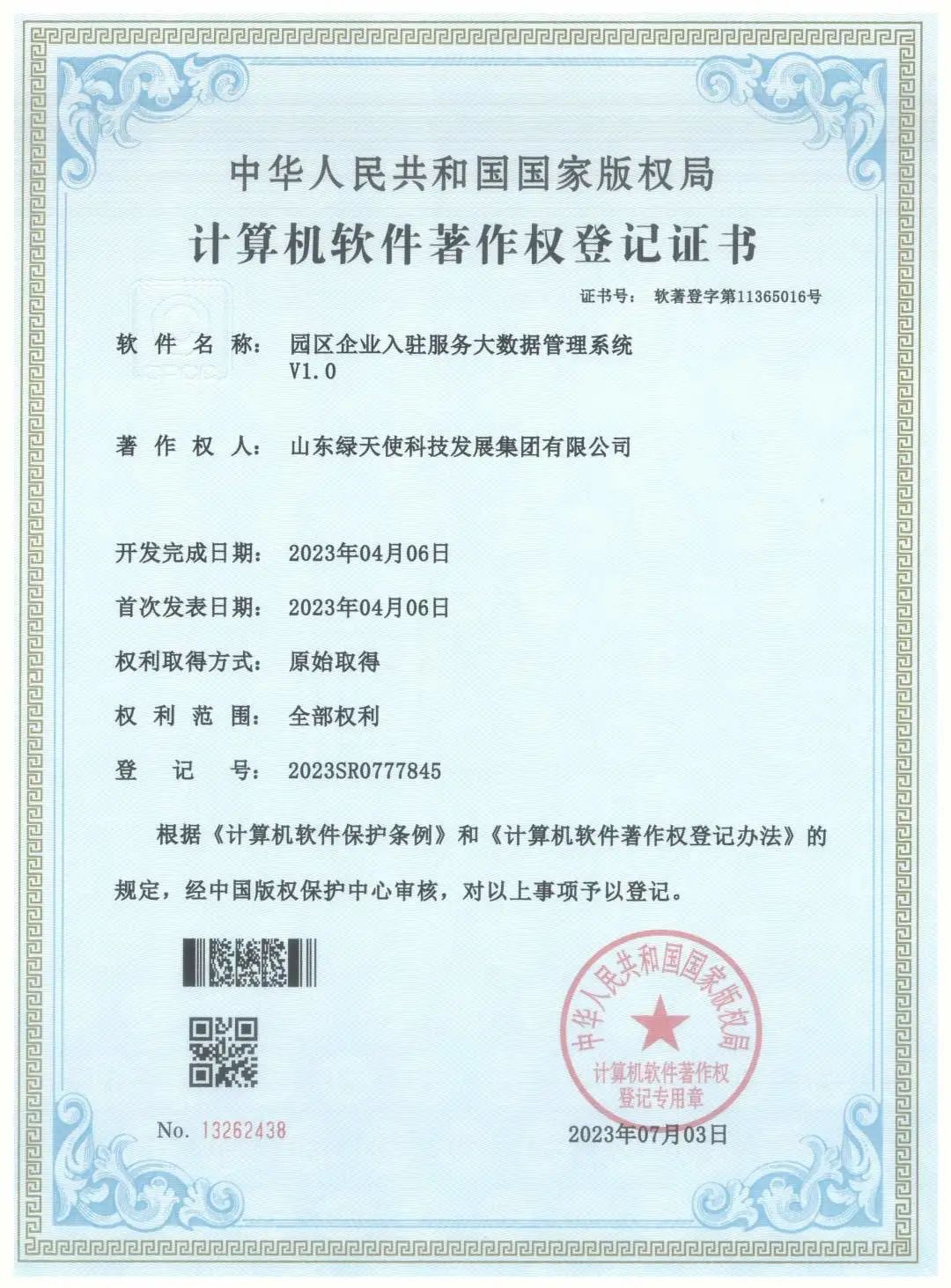 為進(jìn)一步賦能綠天使產(chǎn)業(yè)園區(qū)綜合數(shù)字化運(yùn)營管理,提高園區(qū)的產(chǎn)業(yè)服務(wù)能力及園區(qū)品牌價(jià)值,為企業(yè)提供一站式云服務(wù)解決方案,推動(dòng)工業(yè)園區(qū)互聯(lián)網(wǎng)關(guān)鍵技術(shù)創(chuàng)新,近日,綠天使自主設(shè)計(jì)與研發(fā)的“工業(yè)園區(qū)互聯(lián)網(wǎng)云服務(wù)管理平臺(tái)V1.0”和“園區(qū)企業(yè)入駐服務(wù)大數(shù)據(jù)管理系統(tǒng)V1.0”,根據(jù)《計(jì)算機(jī)軟件保護(hù)條例》和《計(jì)算機(jī)軟件著作權(quán)登記辦法》的規(guī)定,經(jīng)中國版權(quán)保護(hù)中心審核,獲得中華人民共和國國家版權(quán)局《計(jì)算機(jī)軟件著作權(quán)登記證書》并成功上線。