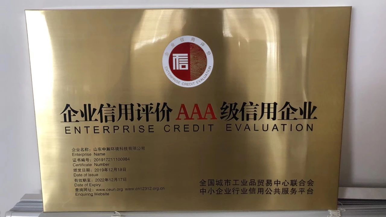 為加強(qiáng)中國(guó)行業(yè)的誠(chéng)信建設(shè),推動(dòng)行業(yè)自律,近日,山東中瀚環(huán)境科技有限公司在綠天使指導(dǎo)咨詢(xún)下完成了AAA信用體系申請(qǐng)認(rèn)定各項(xiàng)工作,并獲得由國(guó)家商務(wù)部和國(guó)務(wù)院國(guó)資委授權(quán)國(guó)家一級(jí)行業(yè)協(xié)會(huì)頒發(fā)的企業(yè)信用評(píng)級(jí)AAA等級(jí)認(rèn)定資質(zhì)。