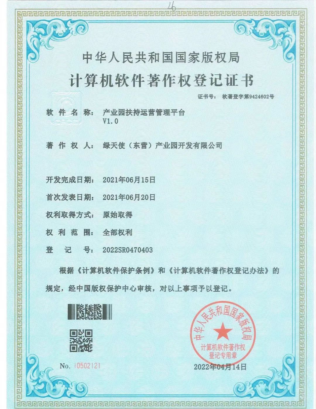 近日,綠天使自主設計與研發的兩款軟件產品——“產業園扶持運營管理平臺V1.0”、“產業園安全隱患排查治理系統V1.0”獲得國家版權局計算機軟件著作權登記證書。