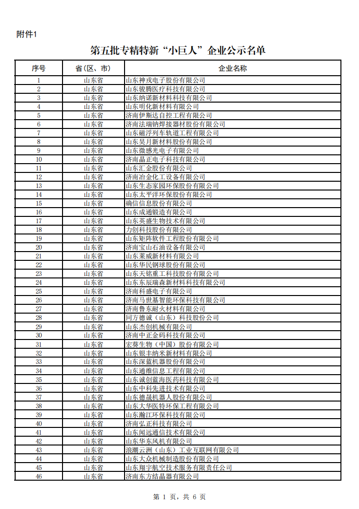 第五批專精特新“小巨人”企業(yè)公示名單