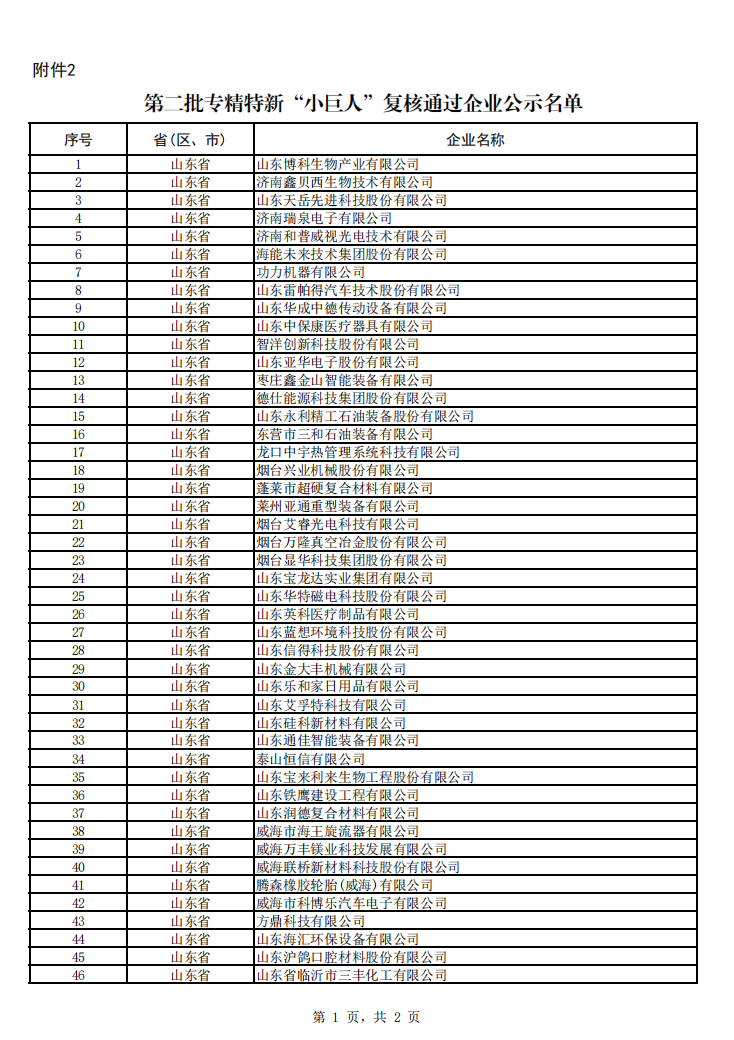 第二批專精特新“小巨人”復(fù)核通過企業(yè)公示名單